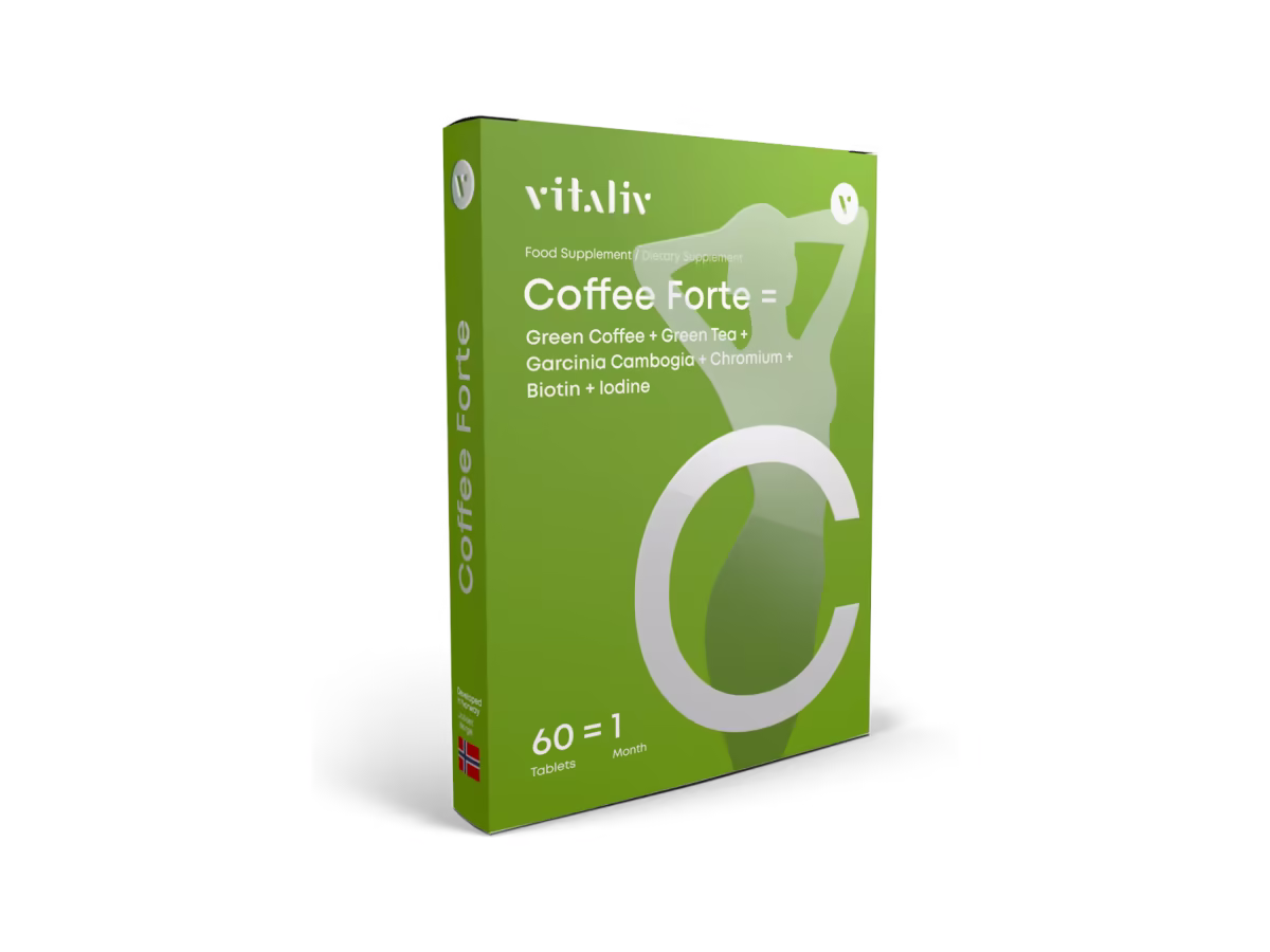Prøv Coffee Forte i 30 dage – et kosttilskud med vigtige næringsstoffer som biotin, chrom og jod samt planteekstrakter, der traditionelt er blevet anvendt i forbindelse med vægtkontrol.